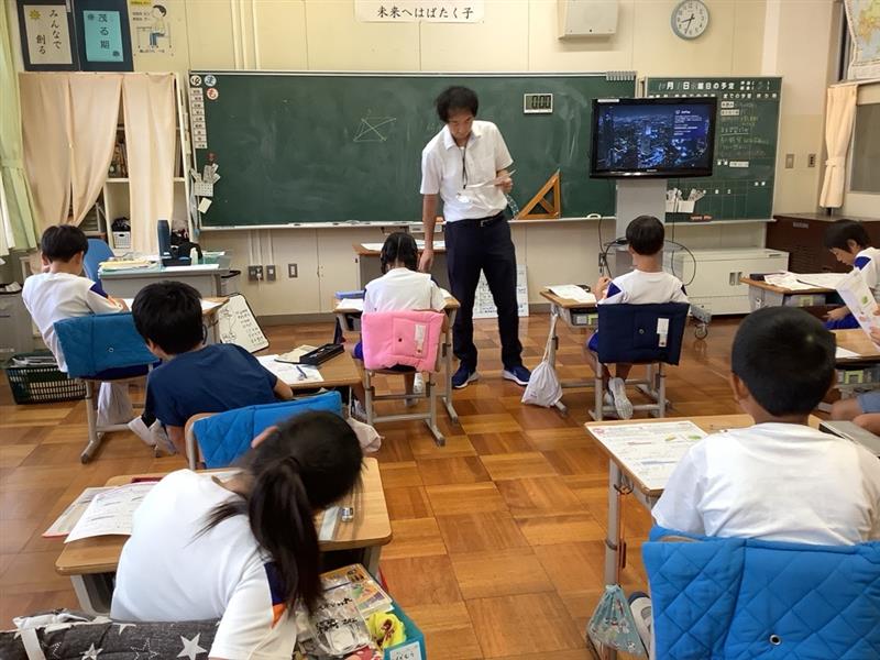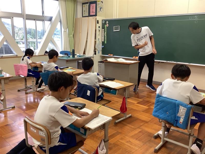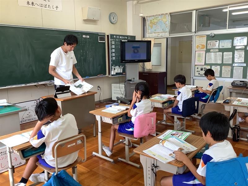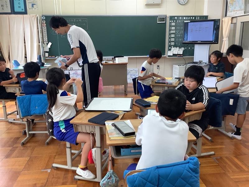 1年生の綿植え、プール掃除、5年生の田植え、航空写真撮影がありました。18日には、現役のサッカー日本代表選手が来校しました。